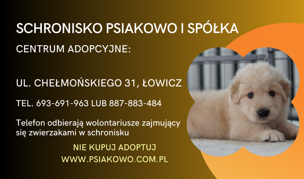 📍 Centrum adopcyjne: Chełmońskiego 31 w Łowiczu,