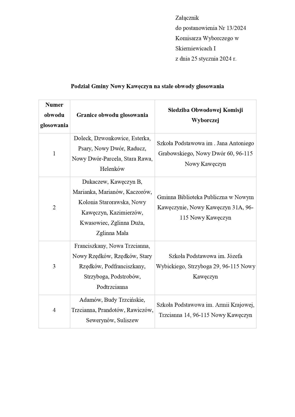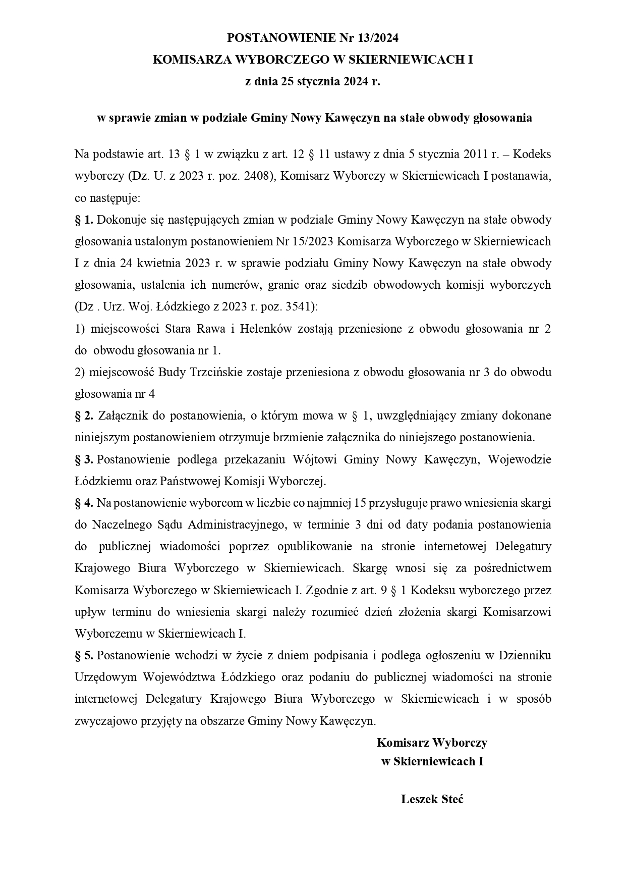 POSTANOWIENIE Nr 13/2024 KOMISARZA WYBORCZEGO W SKIERNIEWICACH I