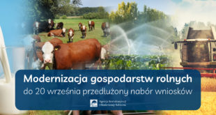 Okres przyjmowania wniosków w ramach „Modernizacji gospodarstw rolnych” z budżetu PROW 2014-2020 został wydłużony do 20 września 2021 r. Jeszcze przez ponad miesiąc rolnicy zainteresowani modernizowaniem gospodarstw mogą składać wnioski o przyznanie pomocy w ramach wszystkich obszarów poddziałania: – rozwój produkcji prosiąt (obszar A); – rozwój produkcji mleka krowiego (obszar …