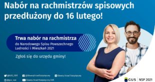 WięcejPRZEDŁUŻAMY NABÓR RACHMISTRZÓW SPISOWYCH NARODOWEGO SPISU POWSZECHNEGO LUDNOŚCI I MIESZKAŃ 2021