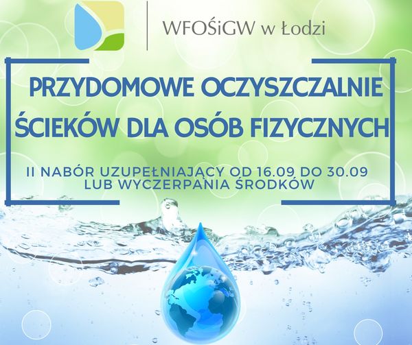 WFOŚiGW w Łodzi informuje, że rozpoczął się uzupełniający nabór w programie Dotacje dla osób fizycznych na wykonanie przydomowych oczyszczalni ścieków na terenie województwa łódzkiego na 2024 rok.