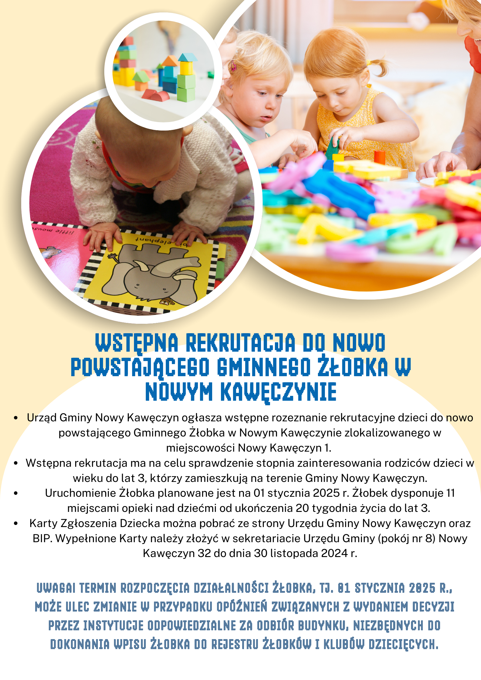 Wstępna rekrutacja dzieci do Gminnego Żłobka w Nowym Kawęczynie