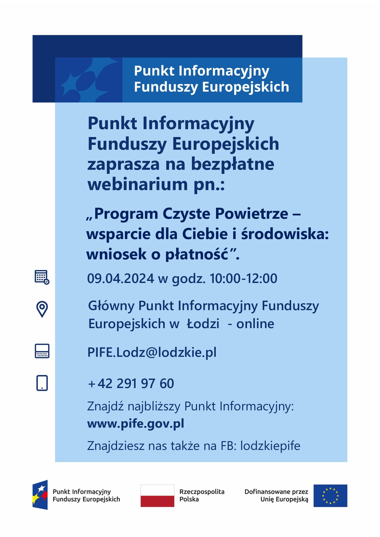 Więcej„Program Czyste Powietrze – wsparcie dla Ciebie i środowiska: wniosek o płatność” bezpłatne webinarium